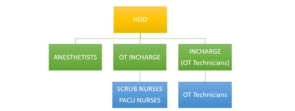 The Department currently has an Anesthesiologist, three Nurse Anesthetists, seven OT technicians, thirteen Scrub Nurses, two Post Anesthesia Care Unit Nurses and four supporting staffs.