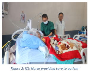 The ICU nurses also perform numerous other tasks like regular vital signs and mechanical ventilator findings, ventilator weaning assessment, monitoring sedation and pain level, formulation of Nursing Care Plan and documentations.